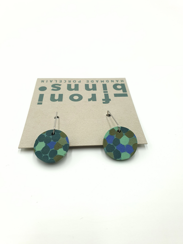 Porcelain dangle earrings hand made in the nerikomi style with stained clay.