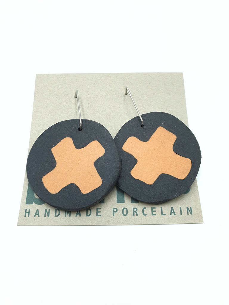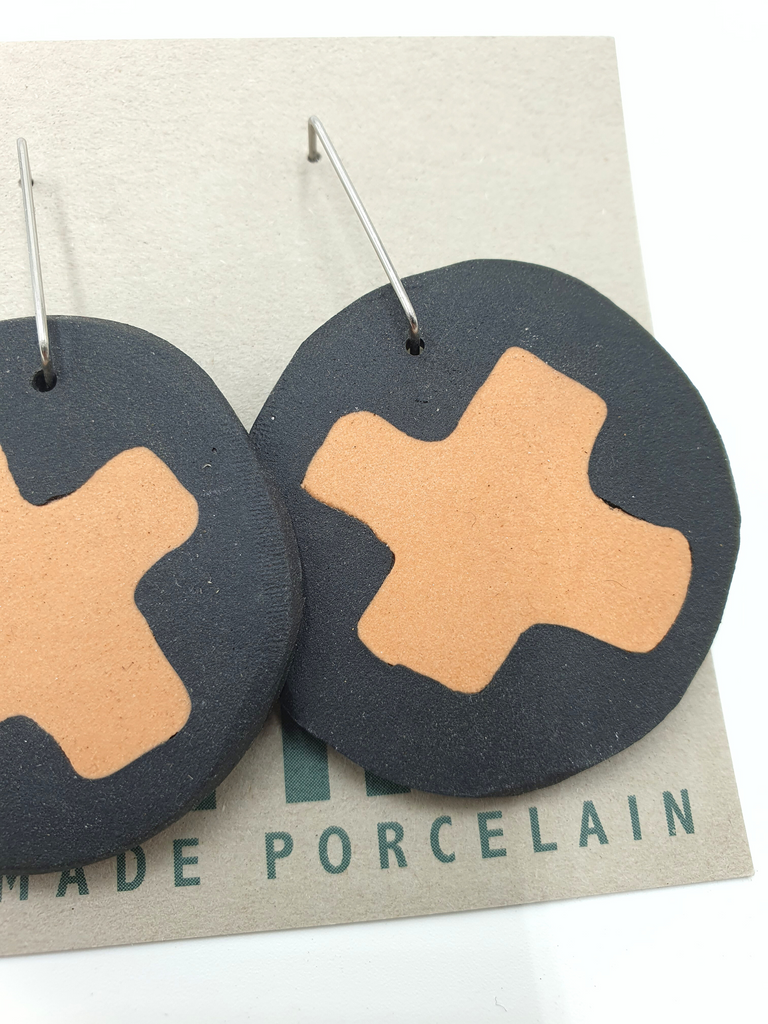 Porcelain dangle earrings hand made in the nerikomi style with stained clay.