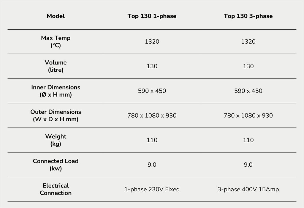 • Two-layer insulation with durable light-weight refractory bricks and energy-saving backing insulation adapted to the maximum kiln temperature for kilns from 80 litres