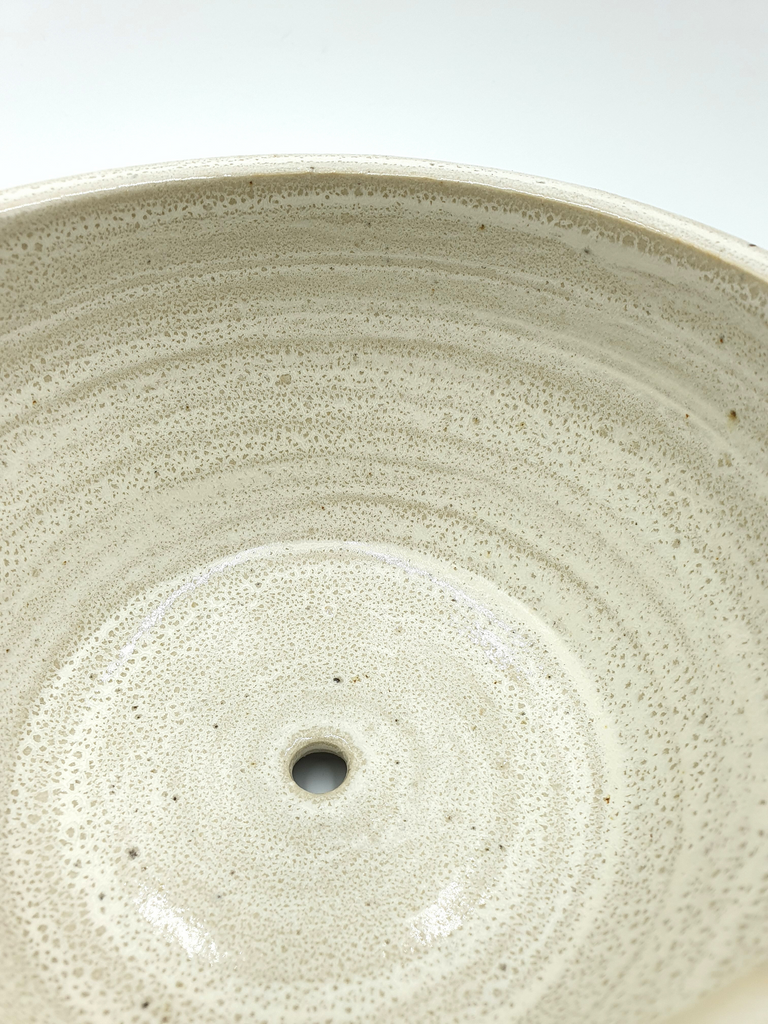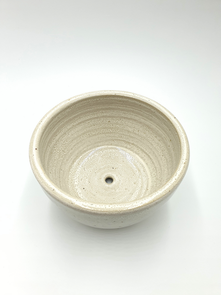Small stoneware planter handmade at Bendigo Pottery and decorated with Shino and White glazes.