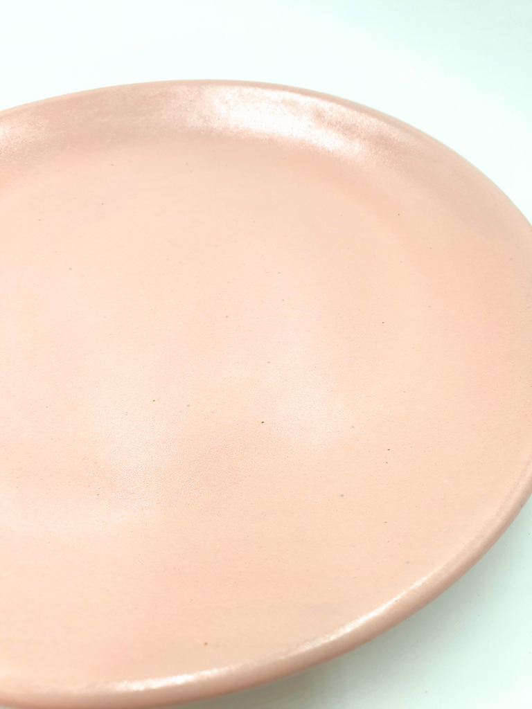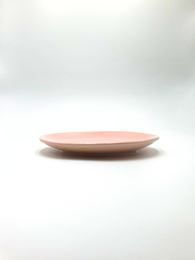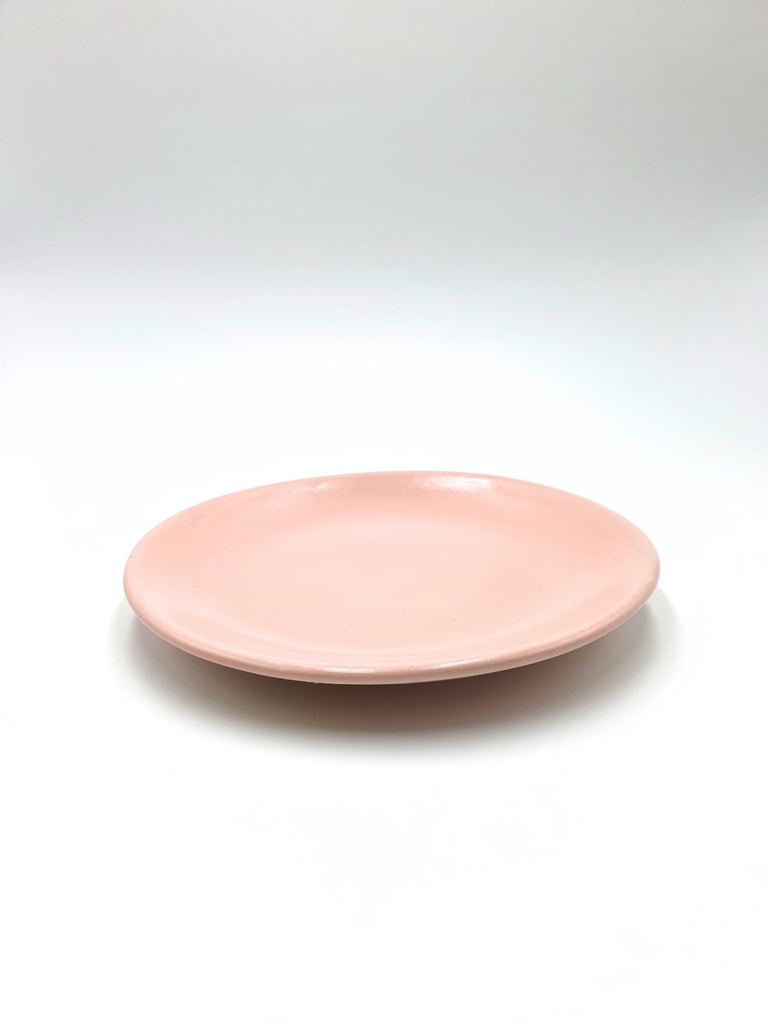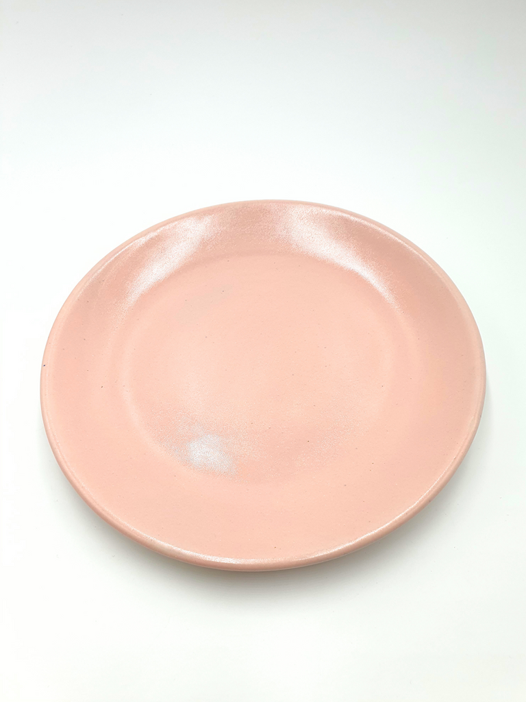 Small stoneware side plate handmade at Bendigo Pottery and decorated with Northcote Pottery Supplies' Pink Gloss glaze.