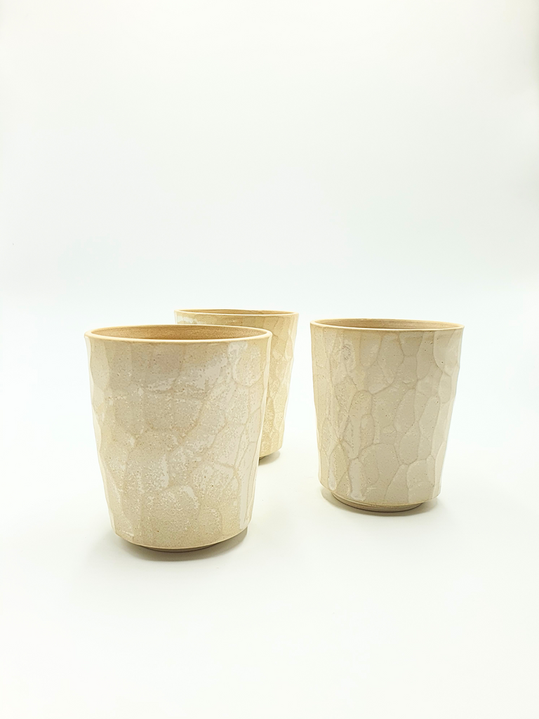 Hand thrown and faceted tumblers. Perfect for tea, coffee or even a cocktail!