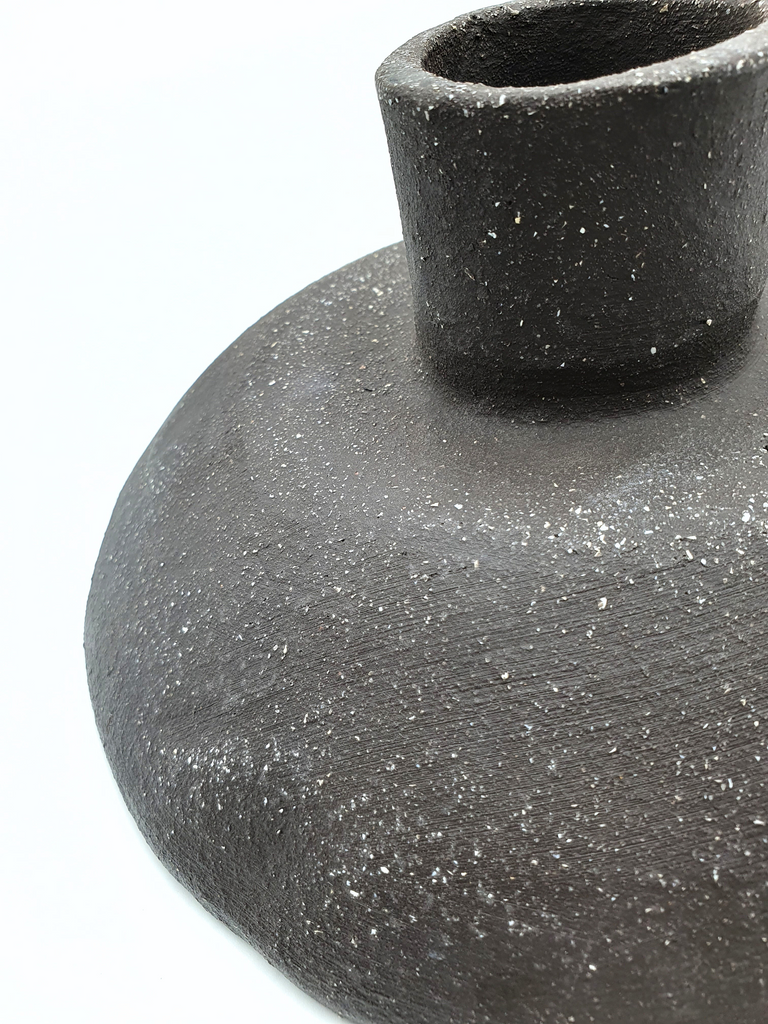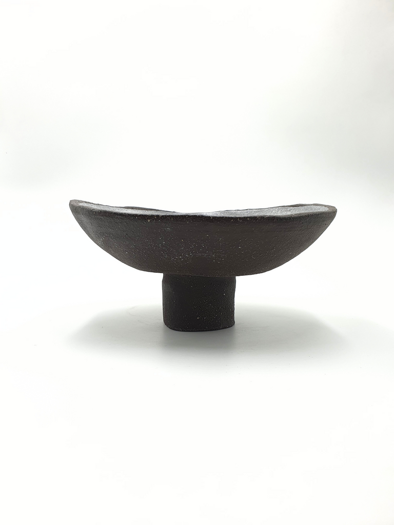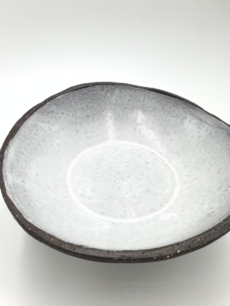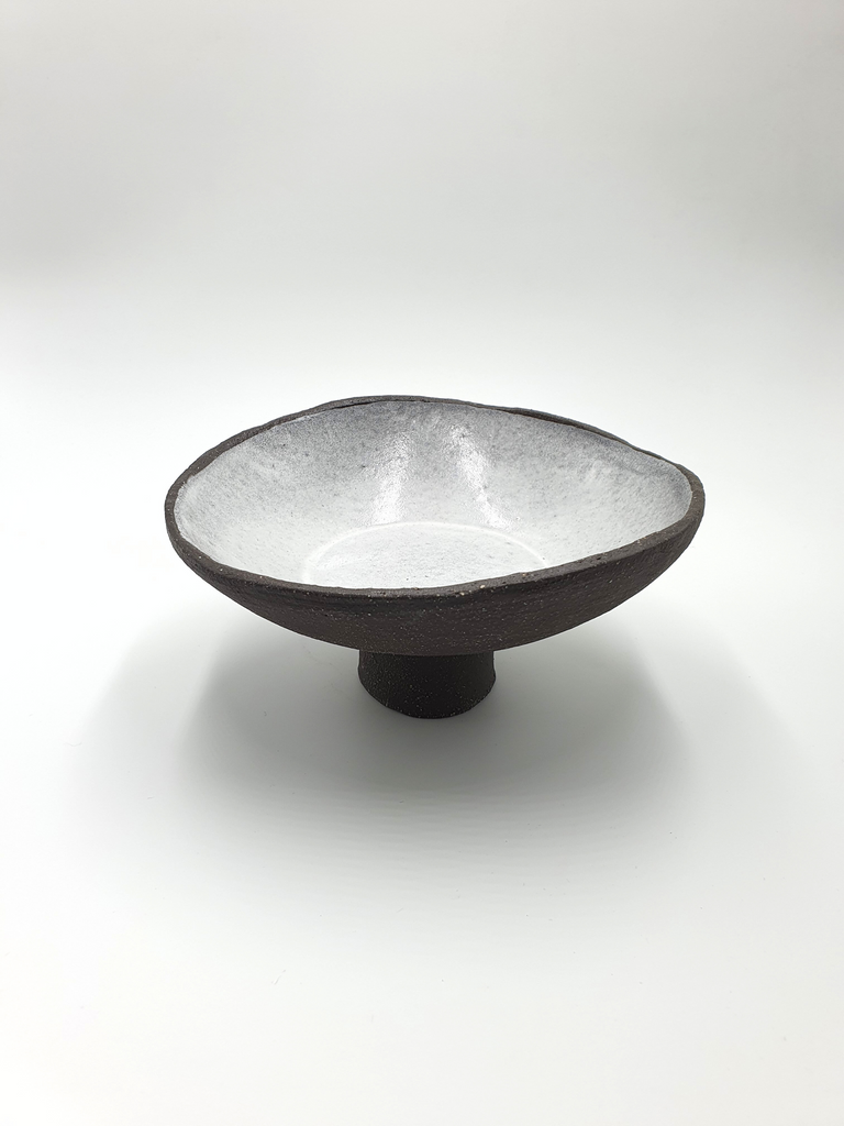 Handbuilt sculptural fruit bowl made from deep brown speckled clay and finished with a soft satin white glaze.