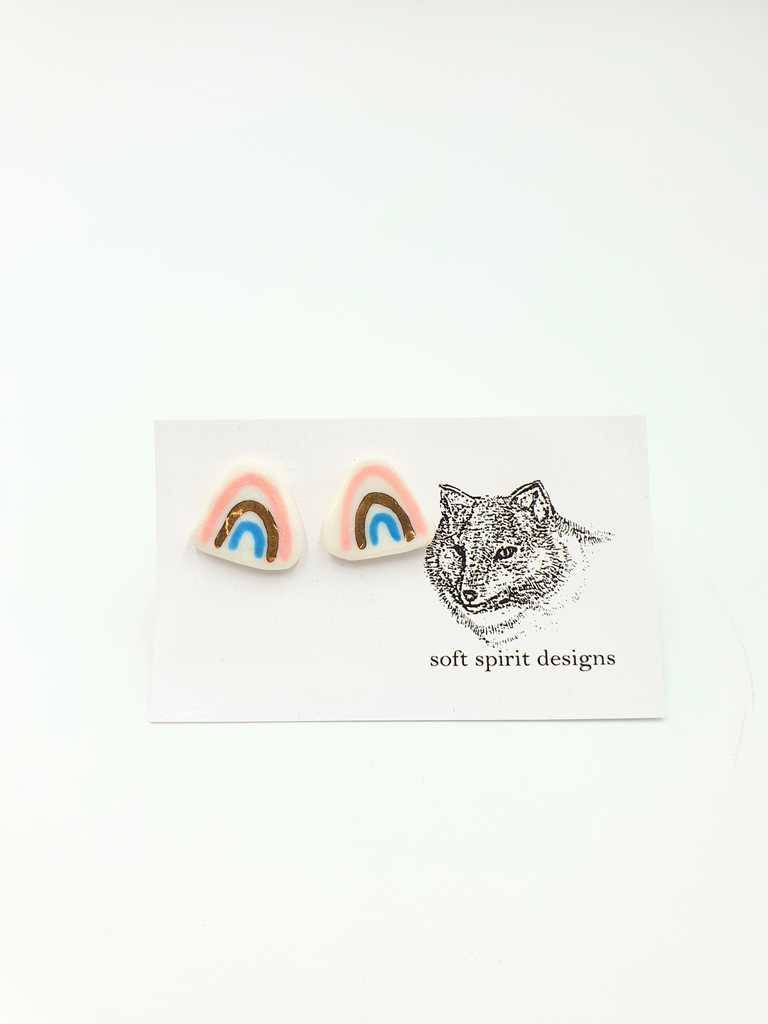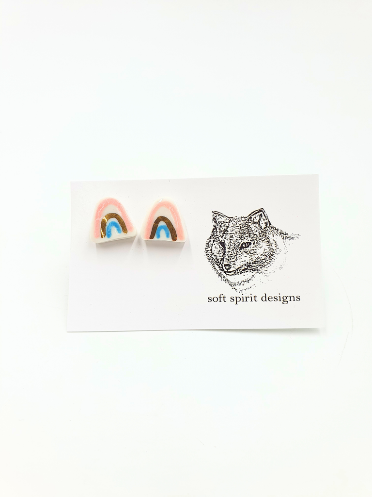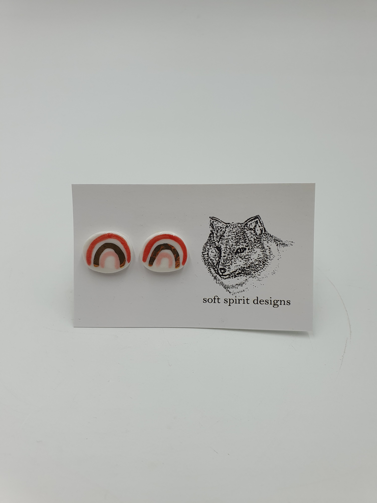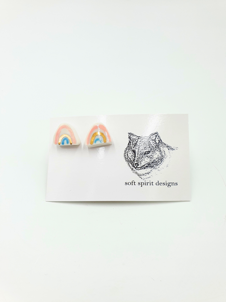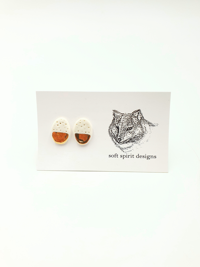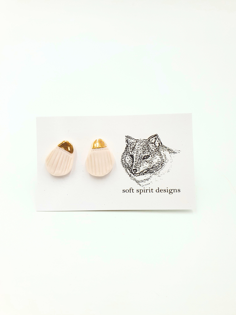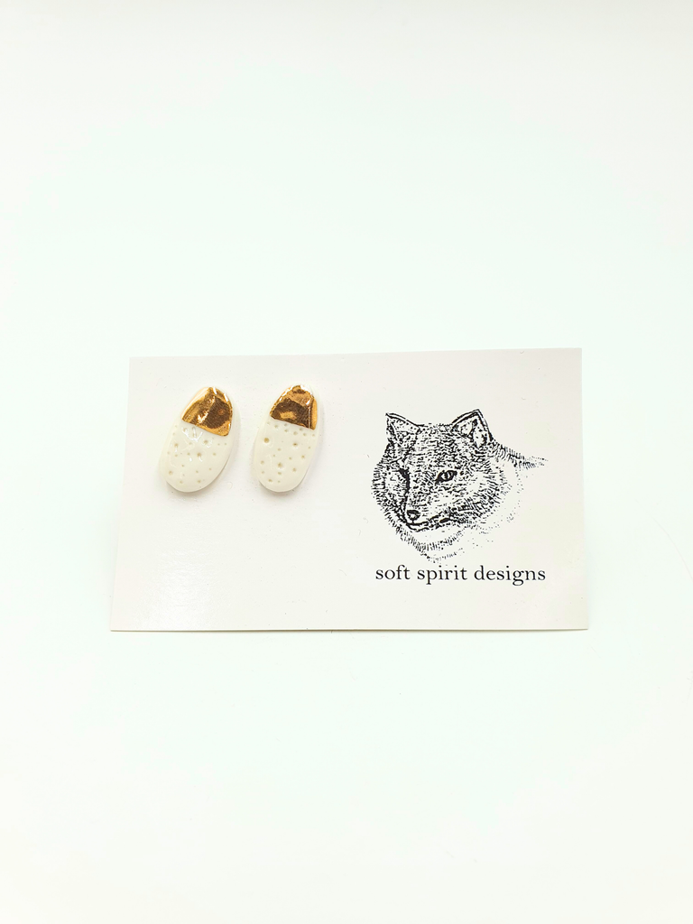 Porcelain stud earrings hand made with gold lustre finish.