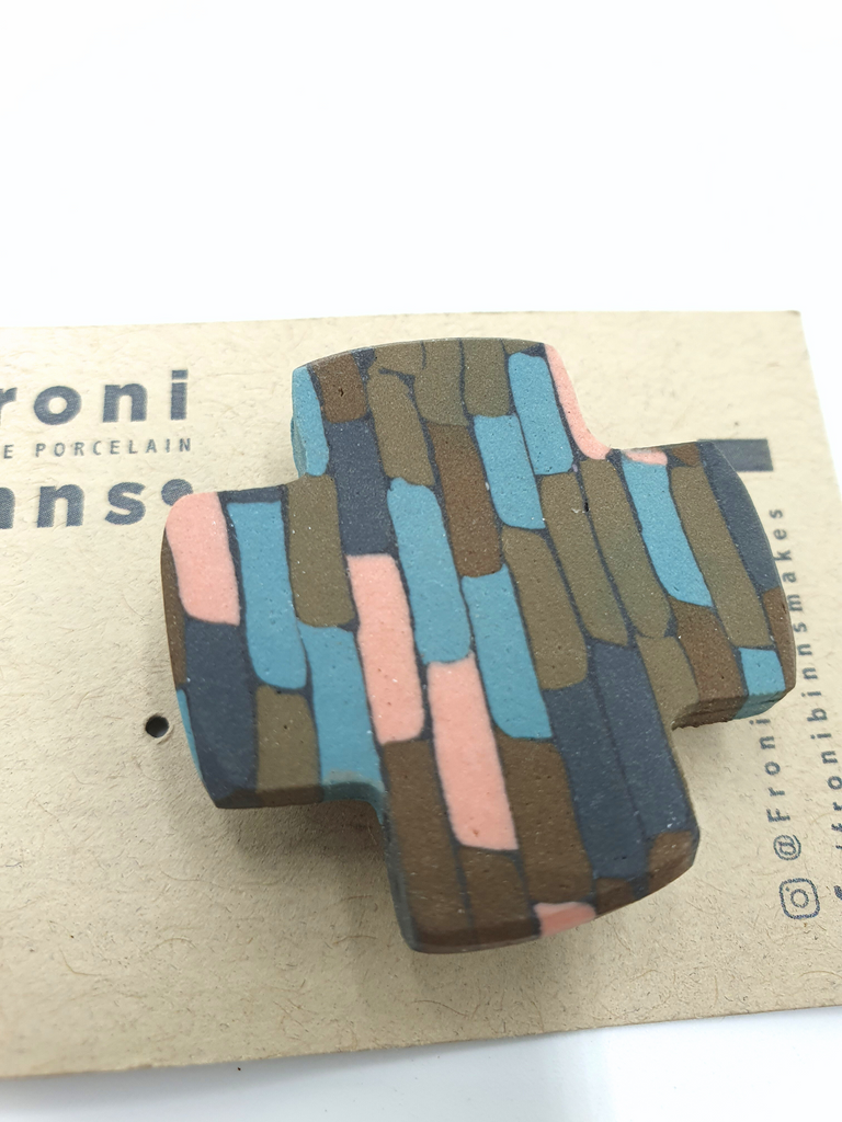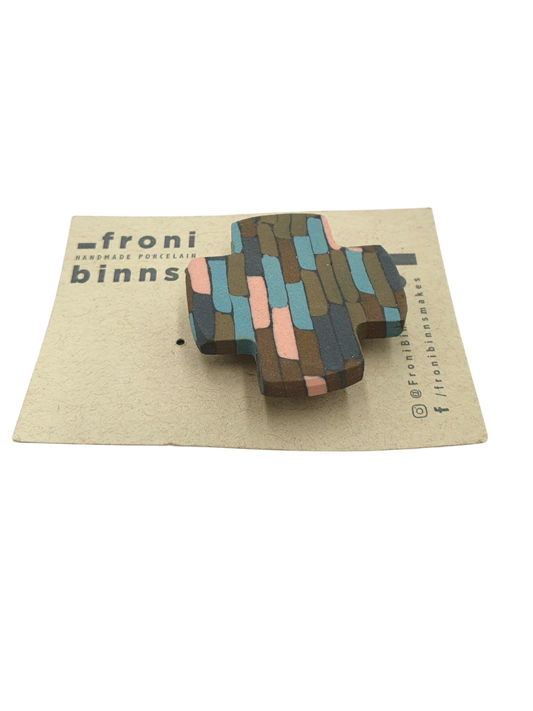 Porcelain brooch hand made in the nerikomi style with stained clay.