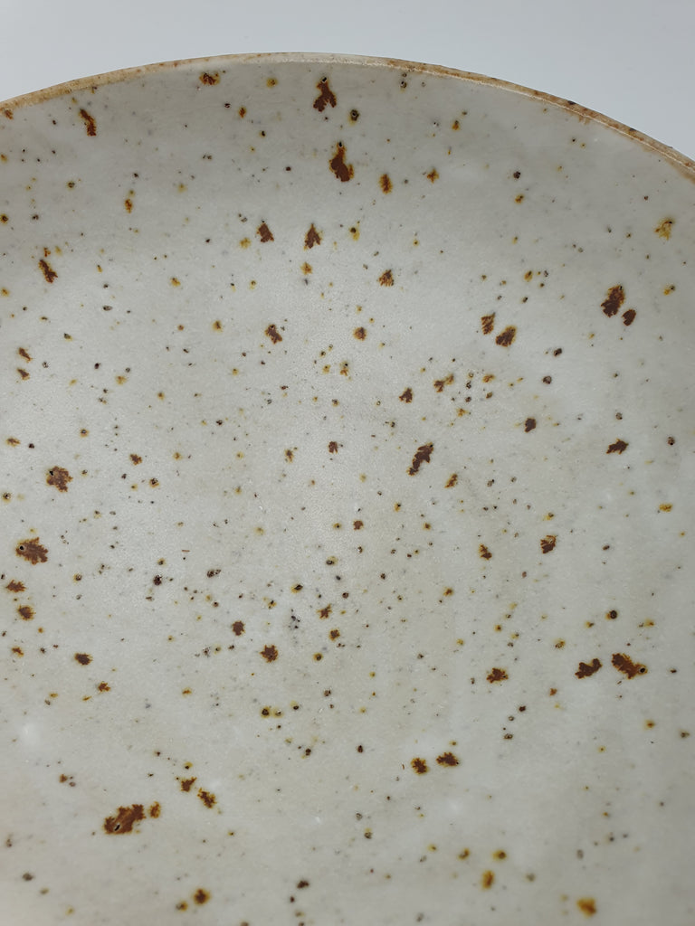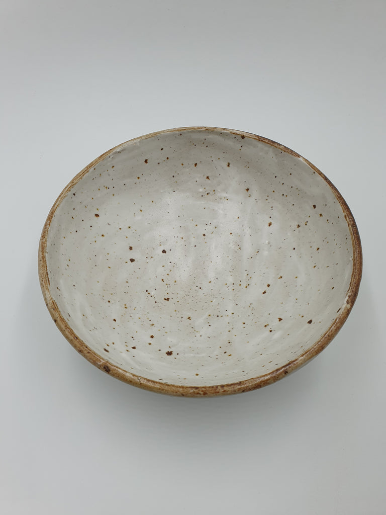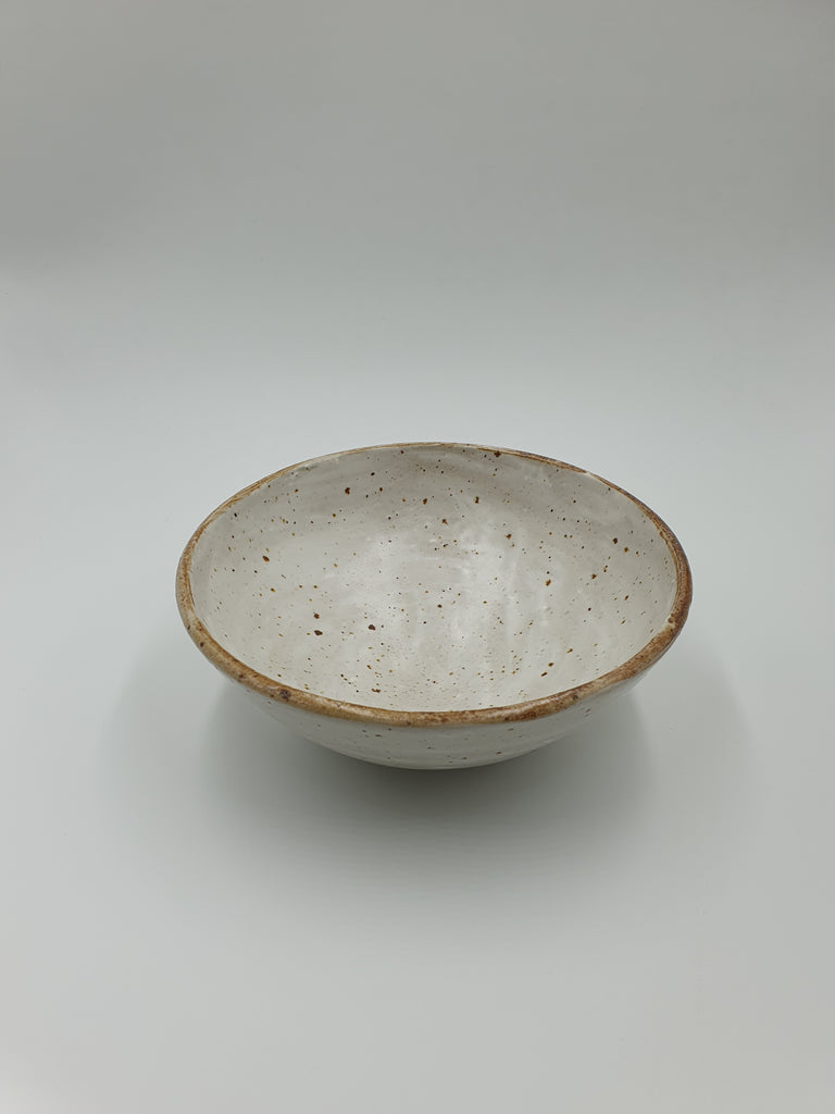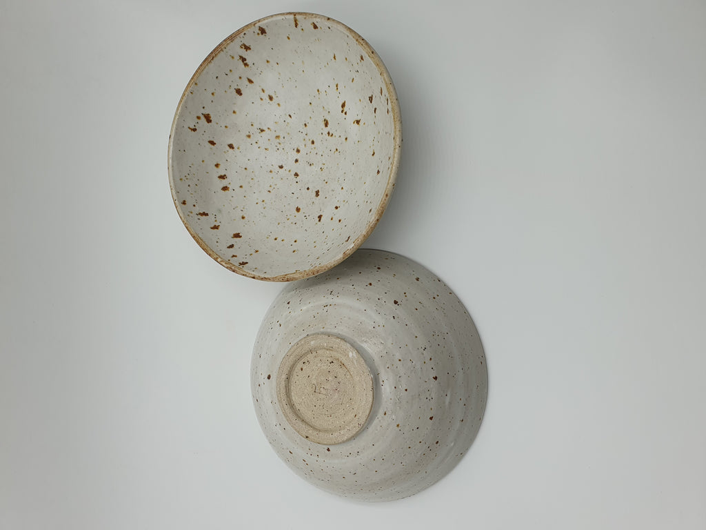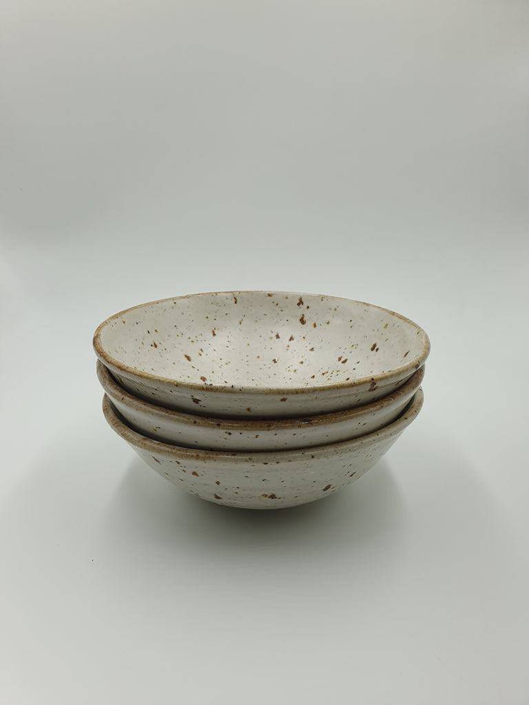 Speckled stoneware blend bowls in soft satin glaze with orange blushing at the rim.