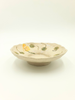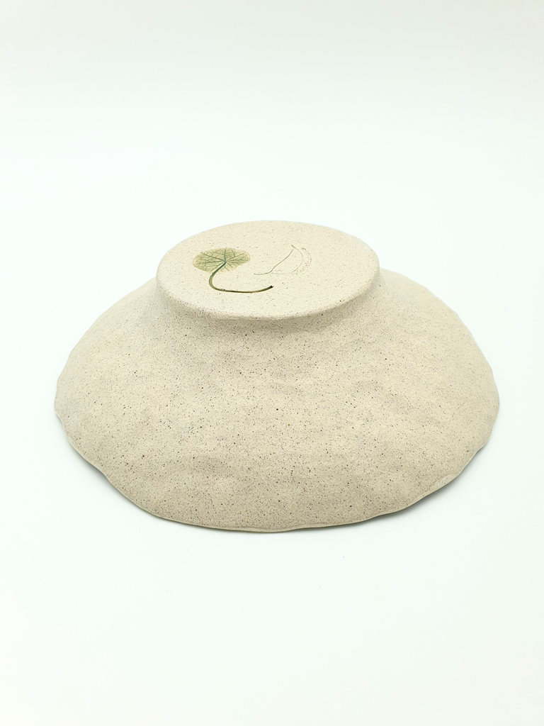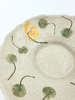Hand built bowl made from delightfully speckled grey clay with clear gloss glaze illuminating the botanicals.